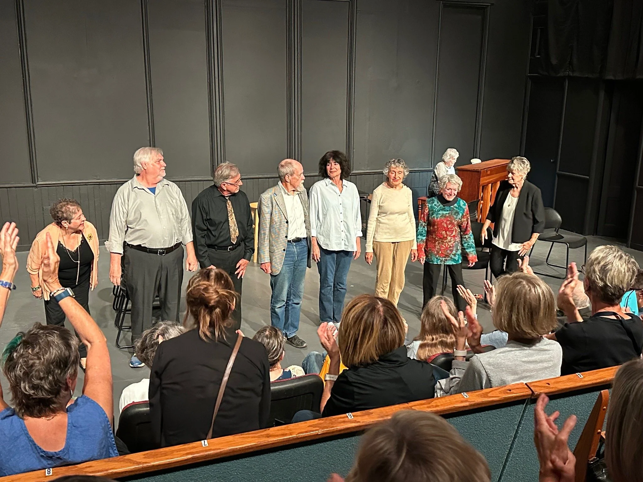 The membership of the Geriactors changes with time, but the spirit continues. Jean Ryon is still the Artistic Director, Elaine Fuller is now the music director, and the eight actors are all new (if also mature). All are well known in the Rochester area. Our pooled years of experience in “live” theater amount to some two or three centuries.